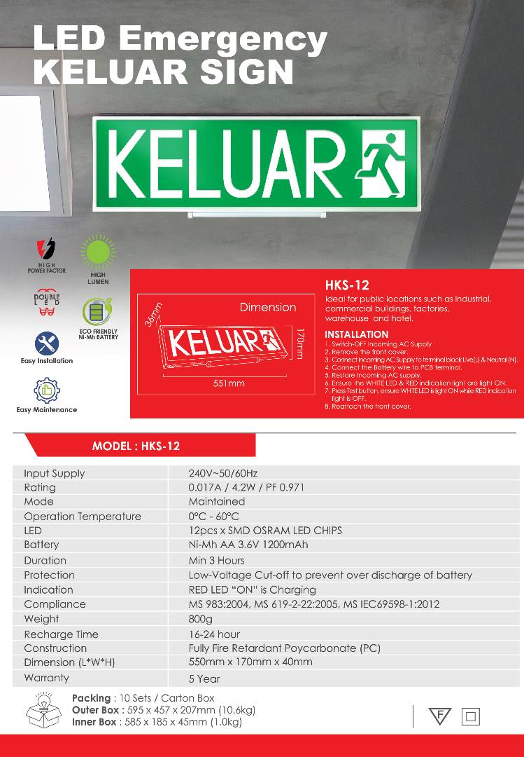 Test Standard : MS IEC60598-1:2012 & MS 619-2-22:2005 MS 983:2004